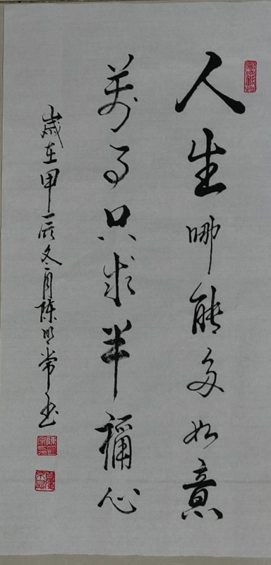 艺术简介:书法家陈明常的简介如下: • 个人背景: • 陈明常先生生于1956年,籍贯四川省泸州市,是中国共产党党员。 • 艺术经历: • 陈明常先生自幼酷爱书法,1976年12月应征入伍到北京基建工程兵师后修理营,临帖成为其业余爱好。 • 他毕业于象书画院书法大师班,先后师从陈墨、杜玉广,并师承邹贵生,经过系统学习,收获颇丰。 • 艺术理念与成就: • 陈明常先生立志为传承书画传统文化而努力,数十年来秉持继承传统,不断创新之理念,笔耕不辍 。经中国通俗文艺研究会专家评审祖审核,被录入中国通俗文艺研艺术人才库,高级研究员。 获取社会文化艺术校外软笔最高级别,十级书法证书。 • 他多次参加省、市及全国性书画展览并获奖,作品深受好评,被众多机构团体和书画爱好者收藏。 • 社会活动与公益: • 陈明常先生热心公益,作品多次参加义捐、义卖,曾被相关单位授予“爱心艺术家”等荣誉称号。 • 作品特点: • 他的作品《七律长征》大气磅礴,铮铮铁骨、气壮山河,展现了红军不怕长征路上的一切艰难困苦, 把千山万水都看得极为平常。 陈明常先生的艺术生涯充分体现了他对书法艺术的热爱和对传统文化的传承, 他的作品不仅在艺术上有着深厚的造诣,同时也在社会公益上发挥了积极的作用。