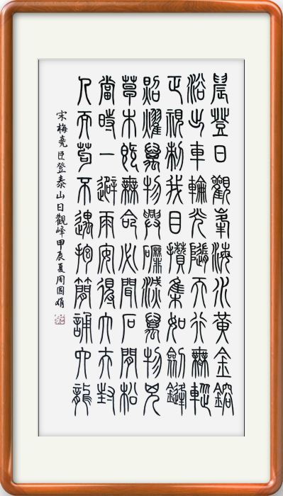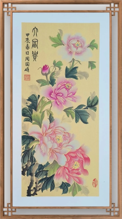 周国娟,女,居住浙江杭州。现为中国书画家研究会理事、浙江省钱江书法研究会会员、北京华夏开明书画院高级院士、当代浙派书画院理事、中艺星光绿色书画平台会员。 书法师承西泠印社印人传、中书协、中国国宾礼艺术家、中国教育电视台水墨丹青书画院院士陈坤荣先生,擅长小篆。绘画师承李树宝大师。 周国娟书画家的小篆用笔强弱对比明显,顿挫分明,秾纤相间,线条显得遒劲沉稳,有其特有的温婉秀气美感。结构上疏朗秀美,曲直自如,上紧下松,线条弹性很足,从而显得婀娜挺拔。 周国娟书画家在学习吴让之技法的基础上,在陈坤荣老师的指导下有所创新,形成了自己特有的篆书风格。以其独特的用笔力度、线条质感、结构特点和创新手法,展现了自己的书法艺术 成就。 在中国传统文化中,牡丹象征着富贵吉祥,高贵优雅,国色天香,吉祥美好。周国娟笔下的牡丹画,用笔自然,层次分明,色彩柔和且恰到好处,从而使作品充满生机和活力,将牡丹的雍容华贵和绚丽浑厚表现得淋漓尽致。 近几年来,多次在全国书画大赛中获得殊荣,先后获得“最高荣誉奖”、“特别金奖”、“特别成就奖”、一等奖等奖项。2024年5月份,在第三届“右军杯”全国诗书画大赛中,用小篆书写的毛泽东词“沁园春·雪”,荣获全国一等奖,并授予“2024诗书画创作百杰”称号;2024年7月在“敦煌国际写经/绘画”大赛中,一幅小篆书法“般若波罗蜜多心经”荣获写经一等奖。2024年8月在“夕阳颂”全国老年书画艺术大展中小篆《观沧海》荣获二等奖;2024年8月,一幅4尺牡丹《花开富贵》被中国人民解放军63612部队收藏。2024年“爱心助学”全国公益书画大赛荣获书法最高荣誉奖。2024年10月荣获2024年第五届“国粹传承杯”全国书画艺术大赛美术组一等奖。在2024年庆祝建国75周年“全国诗书画大赛作品展”中,荣获书法和美术特别成就奖,并受邀成为作品集编委。 同时,还被授予“国粹艺术名家”、“中华好河山书画形象大使”、“著名实力派书画家”、“建国75周年文化宣传使者”等荣誉称号。作品及介绍在百度等十几家媒体平台展示。