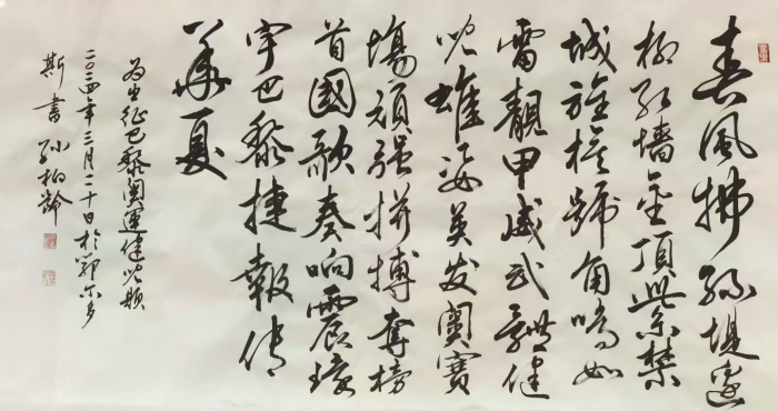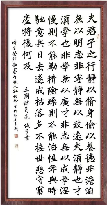 艺术简介:二 作者简介: 孙柏龄,笔名:塞外散人,1950年生,陕西省榆林市人。现为榆林市书法协会会员、鄂尔多斯市书法协会会员、鄂尔多斯市泰发祥书画苑馆长、中艺星光高级会员、中国通俗文艺人才库高级研究员。从小受祖父精湛的书法熏染,其本人热爱生活,酷爱书画艺术,对书法、山水画、篆刻等方面造诣颇深。研习书法40余年,日常临习王羲之、钟绍京、欧阳询、张猛龙、文徴明等名家书贴,精于小楷、小行草等字体。多次参加省、市及全国性书画展览并获奖,作品深受专家、学者的好评。日常积极参加公益事业,多次参加慈善机构组织的义捐、义卖、义拍等公益活动,其作品和参加的活动受到百度等各大媒体的报道。