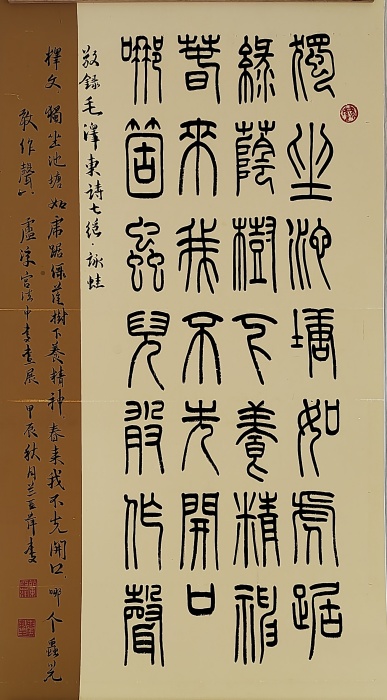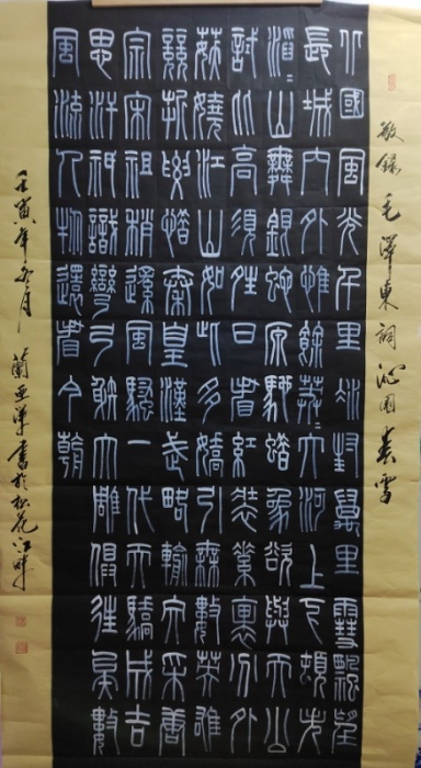艺木简介: 兰亚萍女1957年4月生,吉林省吉林市人,中共党员,中石油吉化退休;自幼酷爱艺术,现全国蓝兰氏家族第三十七名书画家艺术家;《东北亚》杂志社党支部书记。 中国文联通俗文艺研究会艺术人才库高级研究员;全国非物质文化遗产传承人;河南省翰墨书画院客座教授、书画专家;中国军融国防教育促进会军民融合红色书画家委员会甘肃省副主席;塞外画派北京书画院副院长;北京当代翰墨文化艺术院院士;中艺星光绿色书画平台管理中心主任;吉林省老年书画研究会会员;吉林省龙收书画馆会员;吉林省女美术家协会会员;吉林市甲骨文学会会员;吉林市书法家协会会员。《中国草根》吉林省采编中心副主任;北京人生科学学会道德文化部副秘书长;全国中老年春晚总统筹、办公室主任。中国女摄影家协会会员;中国老摄影家协会会员;吉林省摄影家协会会员,吉林市旅游摄协副秘书长。《中国草根》吉林省采编中心副主任;中国新闻实训通讯社特邀记者;吉林市电视台百姓记者;吉广网特邀摄影记者。被美育中国美育教育管理中心遴选美育教育校外辅导员,共同开展美育教育工作。 书法作品入藏中国人民解放军六三六二一部队及国外大使;书画作品被国家相关部门和爱好者广为收藏;书法作品被藏友种植在吉林“森林公园”,每年我提供新书法作品种植。 2022.7篆书作品《敬録毛泽东杂言诗·八连颂》获全国第六届“中华杯”诗书画印艺术作品展“特别金奖”; 2023.1书法作品在“翰墨传情盛世收藏”书画精英作品北京展中获“金奖”; 2023.3《敬録毛主席词水调歌头·重上井冈山》在庆祝党的二十大胜利召开第四届北京当代翰墨名家作品展中获“银奖”; 2023.8书画作品获国际非物质文化艺术促进会颁发“非物质文化遗产传承人”; 2023.8篆书作品入藏“中国人民解放军六三六一二部队”; 2023.8书画作品被中国文化艺术人才库授予“中华书画精英”; 2023.8被中国文化与教育诚信品牌联盟授予“诚信品牌书画家”; 2023.8书画作品获《文化精英.绽放梦想》录入“特辑”; 2023.8篆书作品《奋进新征程.建功新时代》被国际非物质文化艺术促进会“收藏”; 2023.8本人被中国文化艺术人才库特授予“2022年度优秀文艺工作者”; 2023.8在多年历届“书画进万家活动中被授予“人民书画家”; 2023.10书法作品被录入“中国通俗文艺研究会艺术人才库”; 2024.1被中国文化艺术人才库特授予“2023年度优秀文艺工作者”; 被北京中艺星光文化科技有限公司特聘为“数藏作品签约艺术家”; 2024.篆书作品《有龙则灵》在北京中艺星光文化艺术平台举办的“迎新春·书画名家在线交易全国大联展”上以880元被藏友收藏; 2024.1篆书作品《毛主席词卜算子·咏梅》在“龙翔万里·乘风而上”暨新春贺岁中玻文化交流活动中被授予“中玻文化交流使者”,玻大使现场颁发收藏证书; 2024.1书法作品在第四届“翰墨传情·盛世收藏”书画精英作品北京展获书法类“金奖”; 2024.3甲骨文作品《龙飞凤舞》在“北京中艺星光书画在线交易全国大联展”上以998元被藏友收藏; 2024.4书画作品被河南省韵墨书画院特授予“客座教授”; 2024.4篆书作品《敬録毛泽东词卜算子·咏梅》在“庆祝建国75周年”全国诗书画印大赛作品展中获“金奖”; 2024.6甲骨文作品《敬録毛泽东词沁园春·雪》在中国关心下一代工作委员会教育中心“美育中国文体加年华(北京国家体育场总展演)鸟巢活动中获“金奖”; 2024.7国画作品《梅鹊贺春图》在北京中艺星光文化艺术平台于国家体育场(鸟巢)举办的“继往开来甲子情深当代名家作品展”上以2800元被藏家收藏;