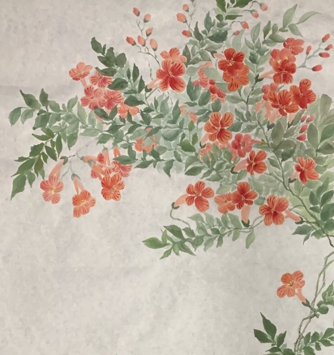 艺术简介: 作者昵称花冠 (流石)2020年4月开始先后在大鹏和及象教育学院网上学习国画、油画、书法,在启蒙老师的精心指导下,开始热爱绘画坚持写写画画,不断临摹沈周齐白石等名家作品!这些年得到了很大收获,参加过全国比赛获得2021年“挑战杯”优秀书画比赛优秀奖;2022年“圆梦杯”书画大赛三等奖;2023年兔年书法国画大赛优秀奖;2023年2月获西安交大校友会特别奖;2024年参加了鸟巢迎奥运嘉年华绘画作品展拍活动。几年来已有几十幅作品被国内外画友和书画爱好者购买收藏。