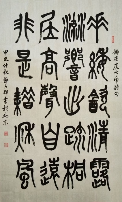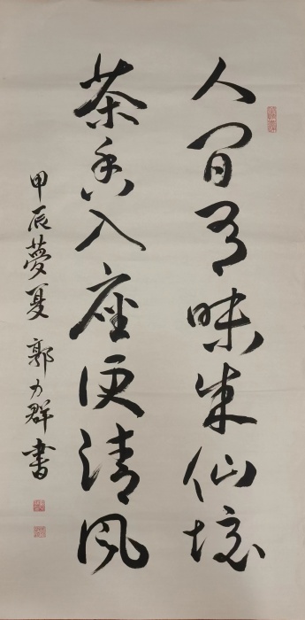 个人简历 姓名;郭力群 男、汉、籍贯,吉林省辽源市,出生于1965年,现定居北京。现任中国中艺星光绿色书画平台高级会员,中国及象书画院会员,塞外画派北京书画院会员,就读中国及象书画院书法专业,从师著名书法教师书法家杜玉广、慕宇、少恭、林生,著名书法教授书法家邹贵生、刘啸、田英章之子田雪松先生,众多实力派书法家为师。 作品曾多次参加全国、省、市书法大赛获奖,在2024年7月,中国关心下一代工作委员会教育中心,美育中国文体嘉年华,北京国家体育场鸟巢,书画总会展活动中获得金奖,并在中玻友好文化交流会中,被玻利维亚大使收藏。 于2024年12月加中国通俗文艺研究会红旗飘飘艺术专业委员会会员。