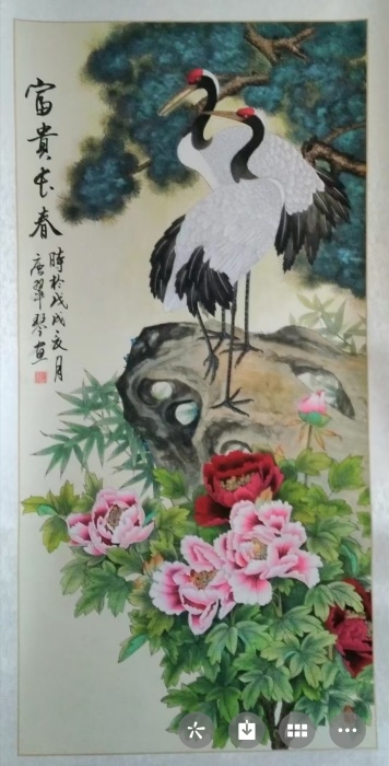艺术简介: 唐翠芹 曾用名唐翠琴 字墨趣 1947年生于天津宝坻, 现居天津市武清区, 中共党员, 大学文化, 天津市公安局武清分局退休。 现为天津市武清区老年书画研究会会员 ,天津市武清区雍润轩书画院会员,天津市武清区九丰书画院院士,津鲁书画管理中心会员,北京中艺星光文化艺术平台高级会员, 塞外画派北京书画院会员。 其自幼酷爱国画艺术,崇拜敬仰古今著名书画艺术家,多年坚持临习其画作。师从于著名写意花鸟画家赵志林老师,山水画家张英明老师。特别是著名的工笔画家赵宏坤老师《清华大学、中央美术学院、英国牛顿艺术学院客座教授》为师多年得其亲传,绘画水平日渐精进。 作品多次参加省市及全国展赛活动并获奖。 2024年被中国人才库授予优秀文艺工作者光荣称号。 2023年3月参加现代名家组书画网组织的《群英书画汇》全国书画评选大奖赛获三等奖。2023年4月参加中国文化艺术人才库在云南组织的《星光杯》书画展获一等奖,得到原文化部副部长、国家博物馆首任馆长潘震宙颁奖。 2023年六月,参加中艺星光艺术平台在北京组织的″翰墨传情盛世收藏”书画精英作品展荣获金奖,并得到原人民日报总编陈俊宏部长亲切接见并颁奖。 2024年十月参加由盛唐系列二十三届《华夏杯》全国书画大赛经专家组委评审获金奖。 其热爱公益事业,积极参加慈善机构组织的义捐义卖活动。 于2024年12月加入中国通俗文艺研究会红旗飘飘艺术专业委员会会员。