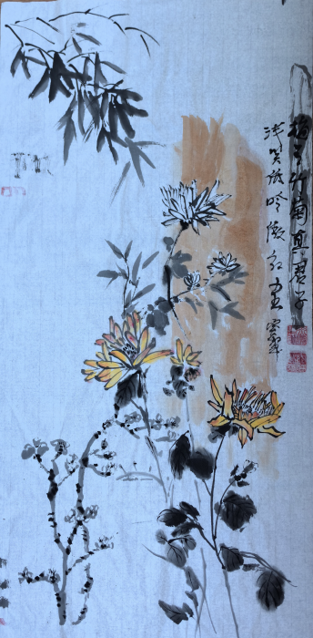 艺术简介:赤鸣,女,雅号:甜橙小痴,1957年出生,现居四川省成都市,现为中艺星光绿色书画平台高级会员。 自幼酷爱书画艺术。崇拜齐白石、潘天寿、李苦禅等大师,先后师从全国著名山水画名家邱笑秋的弟子陈勇,师从著名画家刘松岩大师学习山水画作。数十年来秉持继承传统,不断创新之理念,笔耕不辍,博取众家之所长,作品形成了清新大气,笔墨酣畅,寓意深刻,气韵生动的艺术风格。常年坚持研习创作,笔耕不辍,擅长国画水墨。 曾参加张大千纪念馆书画展览,作品深受专家、学者好评,并被部队N次收藏。被业界公认为具有收藏价值和发展潜力的绘画艺术家。 其积极参加公益事业,作品多次参加权威慈善机构组织的义捐、义卖、义拍等公益活动,被慈善单位授予"爱心艺术家"、德艺双馨"艺术家等荣誉称号。 再获得全国书画展金奖,2024年被邀鸟巢奥运嘉年华特约书画家,同年中国敦煌正觉写经院聘任赤鸡先生担任中国敦煌正觉写经院院士。