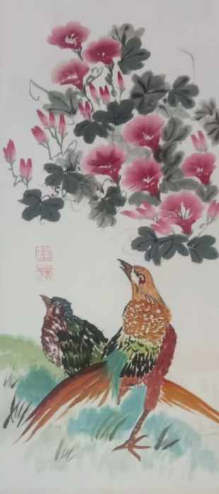 艺术简介: 杨春芳,女,山东省德州人,现为威海书画协会秘书长。胶东书画研究员,山东书画协会会员。 其从小爱好书画,在某书画学院系统学习山水、花鸟、人物国画,长年笔耕不辍地研习、临摹名家绘画艺术,画艺不断精进。其擅长花鸟绘画,在花鸟绘画领域展现出了非凡的天赋与精湛的技艺。每一笔每一划,都仿佛蕴含着生命的灵动与自然的神韵。她笔下的花朵,或娇艳欲滴,或清新素雅,花瓣的纹理细腻入微,色彩过渡自然而美妙,仿佛能嗅到那芬芳的香气。而那些鸟儿,形态各异,羽毛的光泽与质感被表现得淋漓尽致。有的振翅欲飞,充满了生机与活力;有的栖息枝头,眼神灵动,似在与观者交流。她善于捕捉花鸟之间的微妙关系,用画笔营造出一个个和谐而又充满诗意的场景。仿佛在诉说着大自然的神秘与美好,让人不禁沉醉其中,感受着那份宁静与祥和。 其在第一届"圣海杯"全国精品书画印大赛一等奖,同时被授予:当代实力派艺术家荣誉称号, 在第14届″艺术之星"全国书画大赛中,荣获成人组银奖, 在胶东第三届"书画印"大赛中荣获一等奖。 在美育中国文体嘉年华鸟巢活动中作品荣获金奖。 北京塞外国际文文交流中心,塞外画派丹青容耀奖,其创作的书画作品已入藏中国人民解放军六三六一二部队。