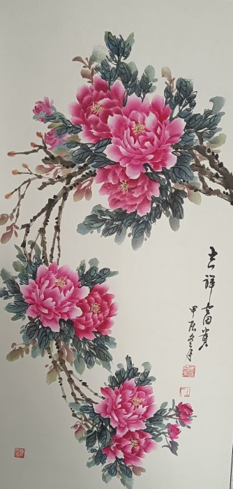 艺术简介:侯兴国,男,河北省张家口市涿鹿县人。学历:大学本科学历.职业:教师政治面貌:中共党员。职称:中学高级教师(副教授)书法艺术家、绘画美术师本人自幼爱好书画艺术,曾就读于张家口师专美术系,系统地学习了书画艺术知识,后自学河北师范大学课程并毕业。中国教育学会研究员,中国书、画家协会会员,中国云台山书画院协会会员。1978年10月参加工作,几十年来一直任中小学教师、校长、党支部书记及教育局督导办主任等职。培养了大批爱好书画艺术的学生及优秀艺术教育工作者。经常参加社会、学校、国外的公益性书画美育教育活动,书画作品在百度及艺联网等多家媒体宣传报导和关注。鉴于对弘扬书画文化的巨大贡献,2021年传统文化研究会、文化艺术人才库特授予优秀书画家头衔。目前主要专研、学习创作书法:行书、草书、隶书和篆书国画:传统写意山水、花鸟、人物,尤其是会派牡丹等的绘画。潜心把自己学到的书画艺术传承下去。曾荣获:1、国家教育部颁发的从事教育三十年,为乡村教育发展做出积极贡献奖。2、省、市、县级优秀教育工作者、优秀校长、优秀党支部书记等荣誉称号。3、曾荣获全国及省市县级书画大赛一、二、三等奖,优秀奖、金奖等。