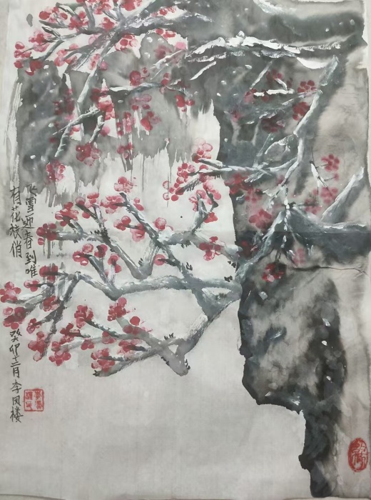 艺术简介:我叫李凤楼,自幼酷爱书画艺术,不断学习介子园书中的画法,又在及象书画院里系统的学习了山水、花鸟、人物课程,同时还参加了书法学习。在学院里学习了吴昌硕、任伯年、齐伯石、徐悲鸿、张大千等名家优秀画作,后又师成李树宝、史国良、赵春秋、陈葆椂以及中国书画院等大师授课。 近年来获奖如下:我创作的《莫高窟的画》在2024敦煌国际写经绘画展活动中被凭为优秀奖,作品被其收藏。去年参加了中国关心下一代工作委员会教育中心的“美育中国文体嘉年华(北京国家体育场总展演社会实践(活动),其《相望》作品荣获金奖。我的一幅《雪景画》作品由中国文化艺术人才库组织的第五轮“中艺星光书画在线交易大联展中成功被收藏家收藏。我的作品《中国长城》被中国人解放军六三六一二部队收藏。本人还在继续参加国画名家研修班的学习。 我要活到老学到老!永远热爱中国艺术书画。为发扬光大中国传统文化做出努力和贡献!我在原单位是一位采暖通风工程师。退休后任建筑安装监理工程师。在原单位曾获优秀共产党员,曾获中国轻工部环保工作优秀工作者奖,多次获陕西省西安市雁塔区政府环保工作优秀工作者称号。曾受聘于陕西省环保科技情报网副秘书长和常务理事。现为中艺星光绿色书画平台会员。
