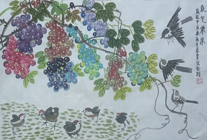 艺术简介: 个人艺术简介:韩芙蓉,女,汉族,1959年出生于浙江绍兴,鲁迅的故乡,周恩来总理的故居,现为中艺星光绿色书画院高级会员。 本人自幼酷爱绘画,后来有幸在及象专业书画机构系统学习了花鸟、山水、人物国画。先后临摹了吴昌硕、任百年、齐白石、徐悲鸿、潘天寿、于非闇、江寒汀等著名画家的花鸟作品以及范宽、张大千、黄公望、清初四王沈周、吴湖矾等著名画家的山水作品。 曾受教于国画名师、美术教育家曲寒山大师、全国著名工笔人物画大师,世称"神笔马良"的欧阳青墨大师、国内著名山水、花鸟名家、荣宝斋艺术顾问若明大师、北宋山水大家何延吉大师弟子澄怀大师及著名国画大家齐白石第三代师承弟子李树宝大师。在大师们的亲授指导下,画技得到了一定的提升,多次被及象书画院评为优秀学员,并获得李树宝大师亲笔题名的师承证书,还获得了画技特具奖等荣誉证书,许多优秀作品被广大书画爱好者收藏。在第四届翰墨传情盛世收藏北京展中荣获金奖,其作品被收藏。