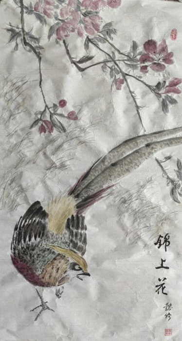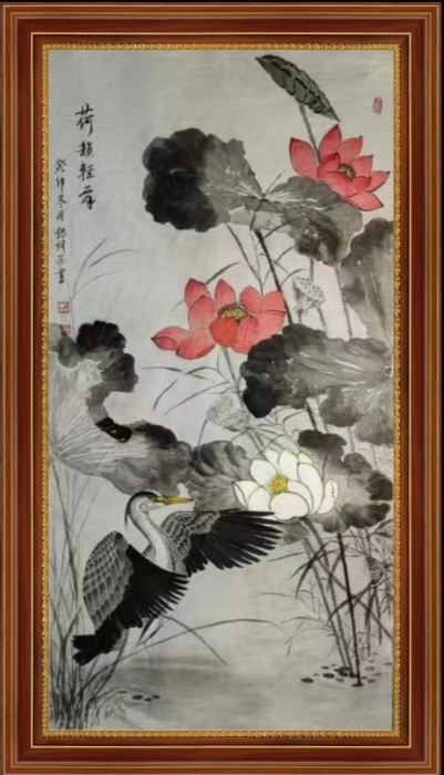 艺术简介: 政治面貌:党员 职称:高级工程师、曾任过企业厂长。 自幼受家父教育和熏陶酷爱书画艺术。后来经过几年专业系统学习,又先后师从全国著名书法、绘画等名家。 绘画:在橙怀、木清等及象院长老师带领下,师从过王雪涛老人弟子陈葆棣、温瑛、孟昭和;花鸟大师:范治斌;齐白石老人弟子崔马太、李树宝大师;国画大师张仁芝老先生;山水名家满威、赵春秋、朱德友;人物名家史国良等。 书法:在杜玉广、少恭、承古等院长老师的带领下,师从过邹贵生大师,自幼崇尚先人欧阳询、颜真卿、柳公权、王羲之等,并从小开始临帖。 常年坚持写生、研习创作笔耕不辍。坚持欧阳询楷书、王羲之行书临习,逐渐行成自己的艺术风格。 近年参加国家、地方级联展受到好评,自己画作联展中得到藏友的收藏如《荷韵轻舞》、《松下清闻流水声》等。《锦上花》在杭州画展获得银奖,《江山》参加解放军部队画展等,特别是在文体嘉年华(鸟巢)活动投稿《稔泰》受到评委好评得到了金奖,并参加法国当年奥运会中国艺术联展并将参加卢浮宫书画展。 在艺术人生中不断参加慈善公益活动,为国家和人民贡献自己微薄之力。 艺术人生座右铭: 懿墨人生:学在苦中求,艺在勤中练。志在天下乐,终日在书案。