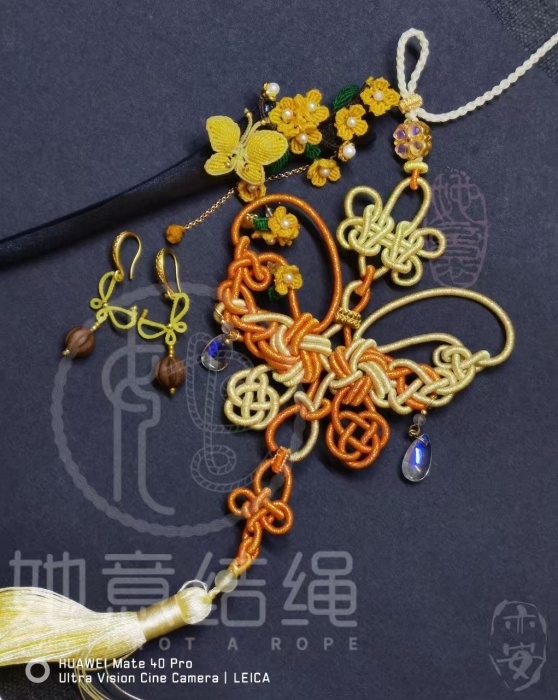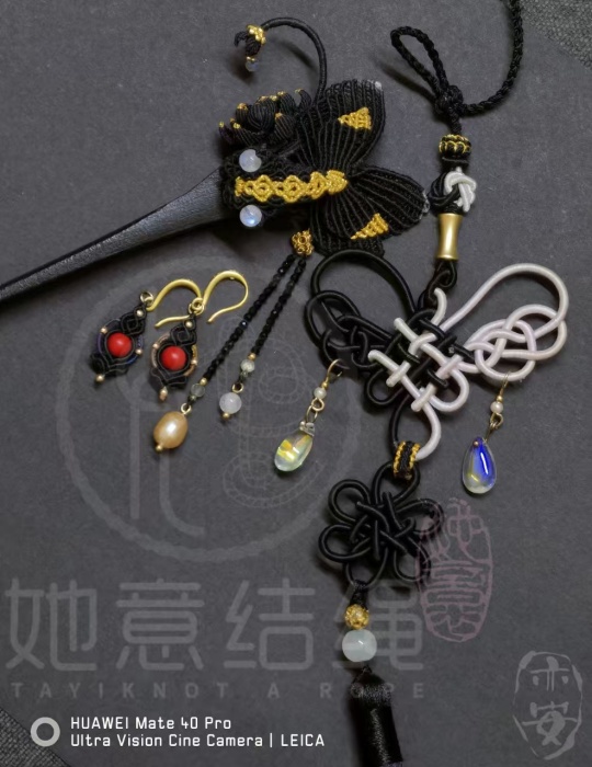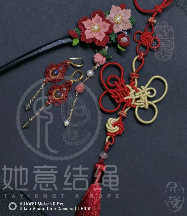 艺术简介:中国结是一种传统手工编织工艺品,以红色丝线为主,通过盘绕、打结等技法编织成各种吉祥图案,象征团圆、喜庆。其历史悠久,源自上古结绳记事,后发展为装饰艺术,常见于节日、婚庆等场合,寓意美好祝福。